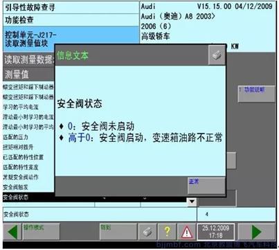 3、讀取CVT變速箱控制單元65顯示組數(shù)據(jù),發(fā)現(xiàn)第1區(qū)顯示內(nèi)容為0,第2區(qū)顯示內(nèi)容為0,第3區(qū)顯示內(nèi)容為4,依據(jù)數(shù)據(jù)分析該車(chē)CVT變速箱滑閥箱無(wú)常規(guī)安全閥釋放工作情況;