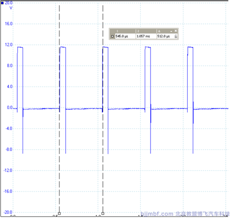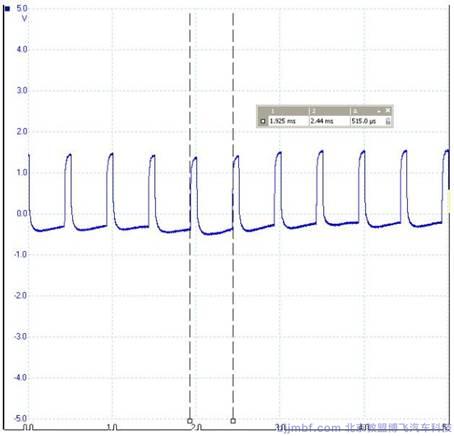 可見,線路干擾造成了 G28在發(fā)動機沒有運轉(zhuǎn)的情況下而產(chǎn)生了“轉(zhuǎn)速信號”,信號周期為 515μs該信號在開鑰匙門 5秒左右就消失了,觀察發(fā)現(xiàn)只有節(jié)流閥體在開鑰匙門時工作,且工作 5秒左右就停止工作。
